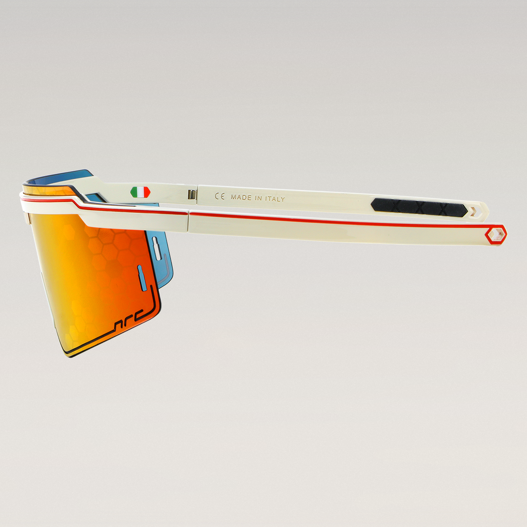 Decoraciones internas y redacción impresas sin usar pinturas; terminales y plaquetas en puntas de goma especiales. La lente envolvente es graduable gracias a un clip interno compatible con el modelo X3. Con el exclusivo y patentado efecto espejo ALMATT +, único en el mundo con efecto Mate / Brillo y tratamientos HIDROFÓBICO, OLEOFÓBICO y Antirrayado Premium.